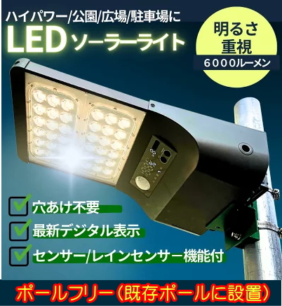 ソーラーパネル+バッテリ+ライトが一体になっています |